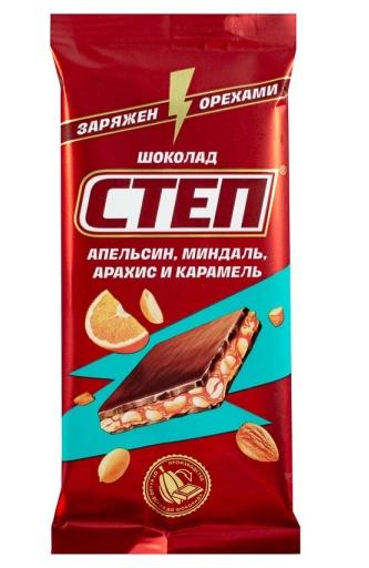 Шоколад СТЕП молочный апельсин, миндаль, арахис и карамель 80г