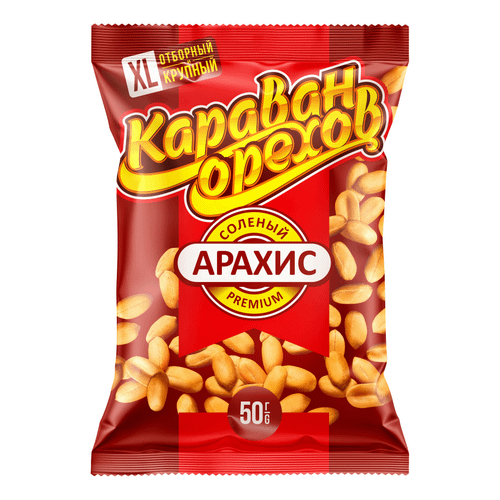 Арахис жареный соленый XL Караван орехов, 50гр