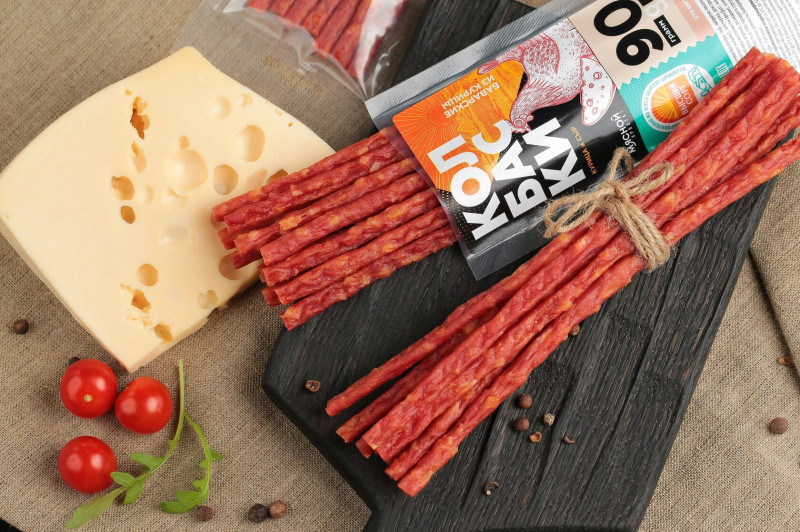 Колбаски Баварские из курицы (курица/сыр) сыровяленые из мяса цыплят-бройлеров высшего сорта 90г Аркадия