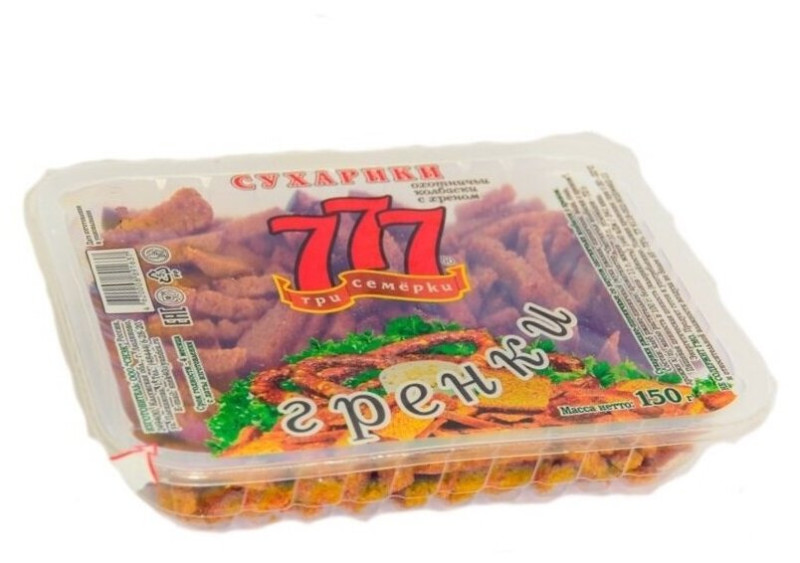 Гренки 777 Охотничьи колбаски с хреном, 150 гр контейнер